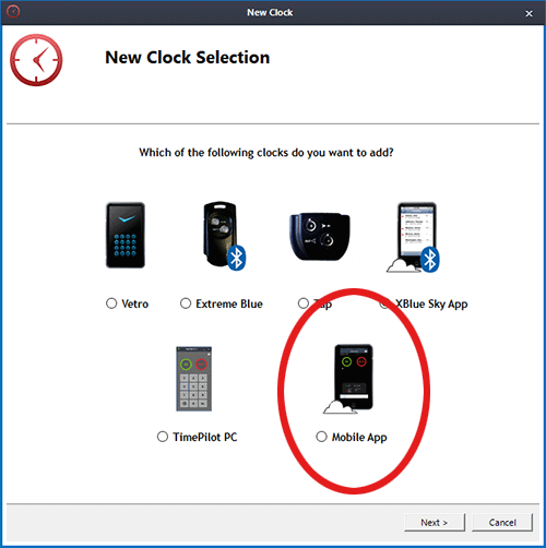 To add a TimePilot Mobile clock, start TimePilot Central and follow these steps: