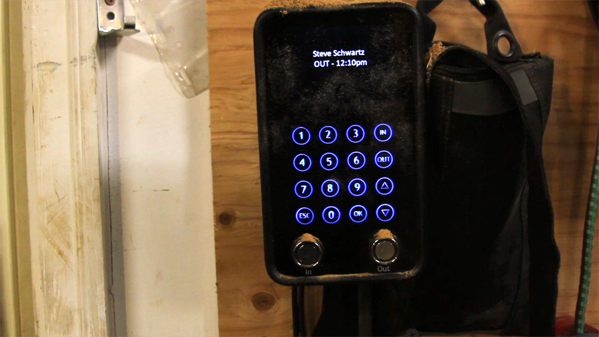 If you're using iButtons, you're instantly clocked in or out; if you're using a four-digit ID number to clock in or out, just enter the number and touch the "IN" or OUT" button.