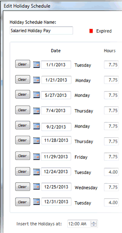 it (TimePilot Central > "Setup" menu > "Holiday Setup" > Click the