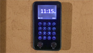 If you're using iButtons, you're instantly clocked in or out; if you're using a four-digit ID number to clock in or out, just enter the number and touch the "IN" or OUT" button.